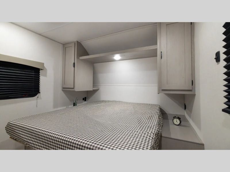 Sleeps 4 Length 26 ft 10 in Ext Width 8 ft Hitch Weight 700 lbs GVWR 7700 lbs Dry Weight 4724 lbs Cargo Capacity 2976 lbs Fresh Water Capacity 40 gals Grey Water Capacity 32 gals Black Water Capacity 32 gals Furnace BTU 20000 btu Available Beds Queen Refrigerator Type GE 12V Refrigerator Size 10 cu ft Cooktop Burners 3 Shower Size 24 x 36 Number of Awnings 1 Water Heater Type Tankless on demand AC BTU 13500 btu Awning Info 18' Power Awning w/ LED Strip and Adjustable Legs Axle Count 2 Shower Type Standard Similar Floorplans