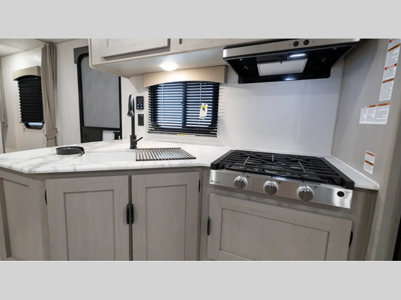 Sleeps 6 Slides 2 Length 26 ft Ext Width 8 ft Ext Height 11 ft Hitch Weight 600 lbs GVWR 7600 lbs Dry Weight 5498 lbs Cargo Capacity 2102 lbs Fresh Water Capacity 40 gals Grey Water Capacity 32 gals Black Water Capacity 32 gals Furnace BTU 30000 btu Available Beds RV Queen Refrigerator Type 12 Volt Refrigerator Size 10 cu ft Cooktop Burners 3 Shower Size 24" x 36" Number of Awnings 1 Water Heater Type Tankless On Demand AC BTU 13500 btu Awning Info 16' Power with LED Light Strip & Adj. Legs Axle Count 2 Shower Type Standard Similar Floorplans