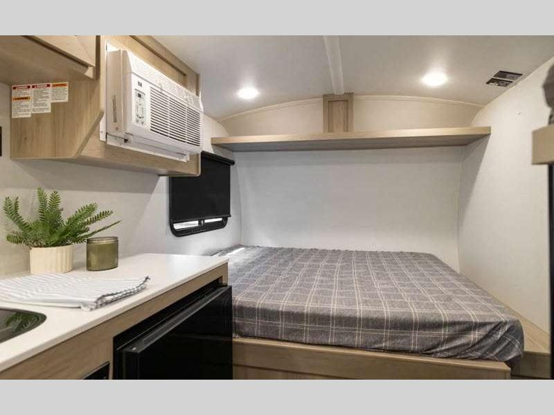 Sleeps 3 Length 14 ft 11 in Ext Width 7 ft 4 in Ext Height 7 ft 3 in Hitch Weight 290 lbs Dry Weight 2243 lbs Cargo Capacity 687 lbs Fresh Water Capacity 20 gals Grey Water Capacity 6 gals Tire Size 15" Furnace BTU 20000 btu Number Of Bunks 1 Refrigerator Type 12V Cooktop Burners 3 Number of Awnings 1 LP Tank Capacity 20 lbs Water Heater Type Gas/Electric Quick Recovery AC BTU 13500 btu TV Info 12V TV Awning Info 10' Power Axle Count 1 Number of LP Tanks 2 Shower Type N/A Similar Floorplans