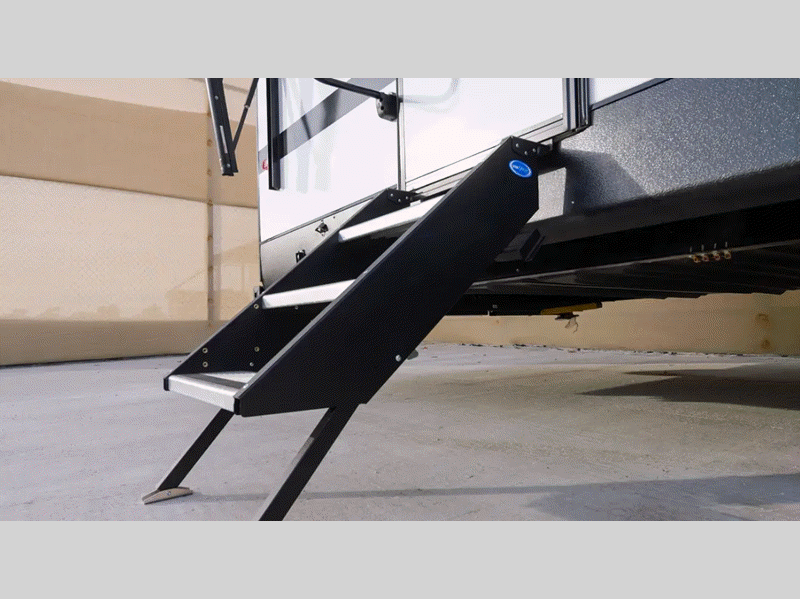 Sleeps 4 Slides 1 Length 32 ft Ext Width 8 ft 6 in Ext Height 13 ft 2 in Hitch Weight 1414 lbs Dry Weight 9022 lbs Cargo Capacity 2592 lbs Fresh Water Capacity 50 gals Grey Water Capacity 65 gals Black Water Capacity 40 gals Available Beds Custom King with Versa-Tilt Refrigerator Type 12V Refrigerator Size 10 cu ft Convection Cooking Yes Cooktop Burners 3 Number of Awnings 1 LP Tank Capacity 30 lbs Water Heater Type Tankless AC BTU 15000 btu TV Info LR 55" Smart TV Awning Info Power w/Adjustable Legs Axle Count 2 Number of LP Tanks 2 Shower Type Radius Electrical Service 50 amp Similar Floorplans