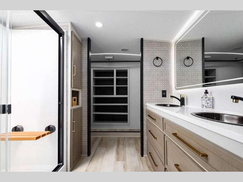 Forest River Wildwood Heritage Glen fifth wheel 380WDR highlights: Bath and a ... more about Wildwood Heritage Glen 380WDR