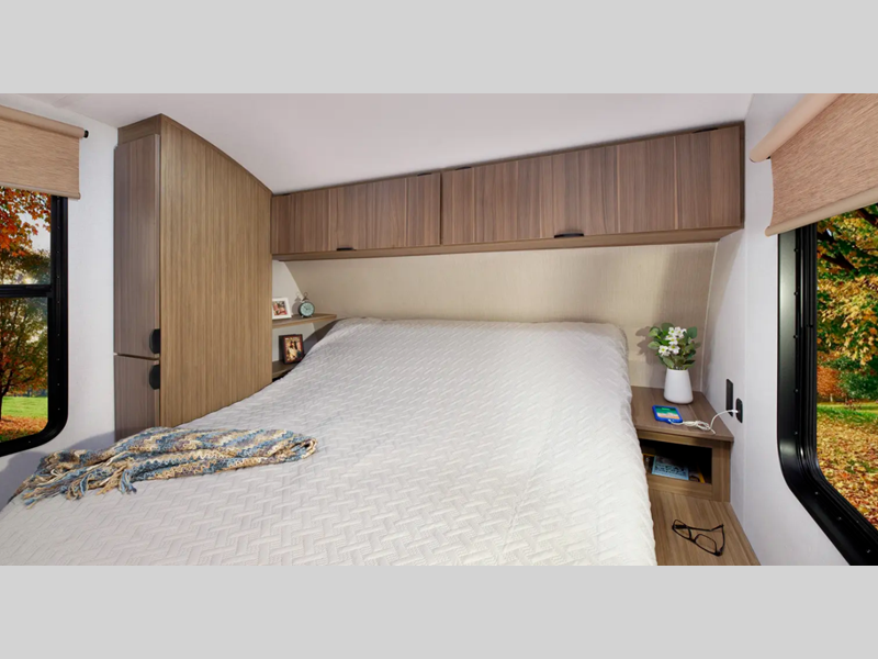 Sleeps 4 Slides 1 Length 25 ft 6 in Ext Width 8 ft Ext Height 10 ft 8 in Hitch Weight 543 lbs Dry Weight 4803 lbs Cargo Capacity 2740 lbs Fresh Water Capacity 39 gals Grey Water Capacity 42 gals Black Water Capacity 32 gals Available Beds Custom King with Versa-Tilt Refrigerator Type 12V Refrigerator Size 10 cu ft Number of Awnings 1 Water Heater Type Tankless AC BTU 13500 btu Awning Info 16' with 4K Blade Lighting Axle Count 2 Shower Type Radius Similar Floorplans