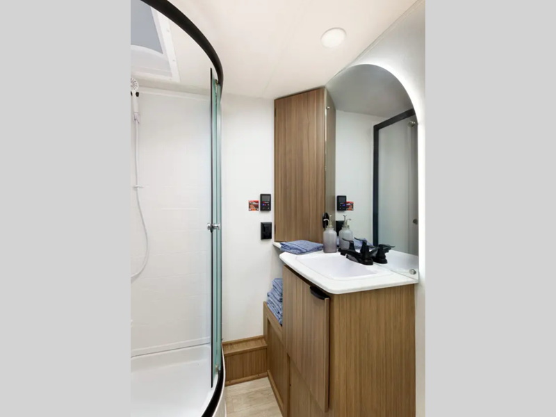 Sleeps 4 Slides 1 Length 31 ft 1 in Ext Width 8 ft Ext Height 10 ft 5 in Hitch Weight 830 lbs Dry Weight 6398 lbs Cargo Capacity 1432 lbs Fresh Water Capacity 44 gals Grey Water Capacity 40 gals Black Water Capacity 30 gals Available Beds King with Versa Tilt Number of Awnings 1 Water Heater Type On Demand Tankless AC BTU 13500 btu Awning Info with 4K Blade Lighting Axle Count 2 Shower Type Walk-In Shower Similar Floorplans