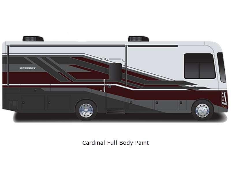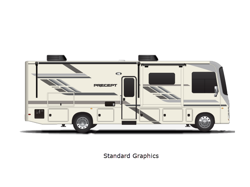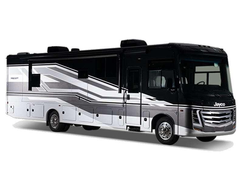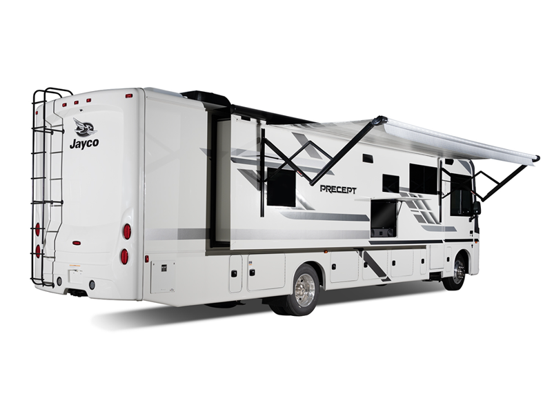 The Precept Class A gas motorhomes by Jayco are loaded with amenities to make each journey one to remember! You'll love the 120-inch windshield for a great view of the open road in front of you, and the front cap with partial paint are sure to turn heads at the campground.